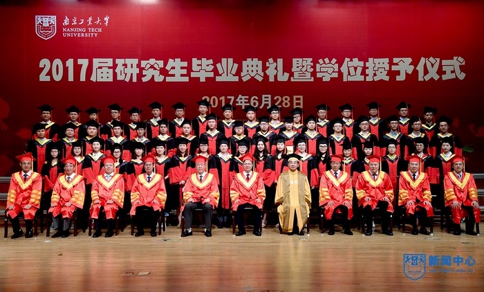 6月28日上午,我校2017届研究生毕业典礼暨学位授予仪式在江浦校区大礼堂隆重举行。校领导芮鸿岩、黄维、朱跃钊、高明、刘伟庆、乔旭、蒋军成、崔益虎、张进明、巩建鸣、吴胜红出席典礼。2017届研究生毕业生、家长代表、校友代表、教师代表、在校生代表、相关部门负责人、各学院书记、院长、分管研究生工作副院长、研究生秘书、研究生辅导员及研究生院全体成员参加典礼。