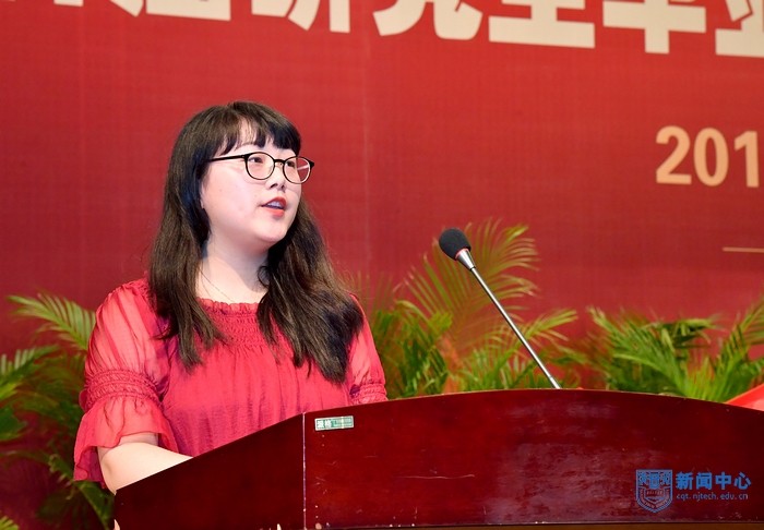 毕业生代表、化工学院朱印龙同学深情回顾了在南工度过的九年美好时光,表示将继续弘扬南工精神,以优异的业绩回报母校。土木工程学院15级博士研究生韩慧璇同学代表全体在校生向即将毕业的学长学姐表达了诚挚的祝贺与依依惜别之情。教师代表、生物与制药工程学院郭凯教授希望全体毕业生工作以后能坚持做人的精气神、坚持学习的求知欲。校友代表、南京理工大学金明杰教授结合自身经历,谈了对自信心和勇于担当的认识,激励学弟学妹们担当起历史赋予的使命。